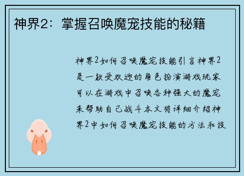 神道养成奇谈:页游攻略大揭秘